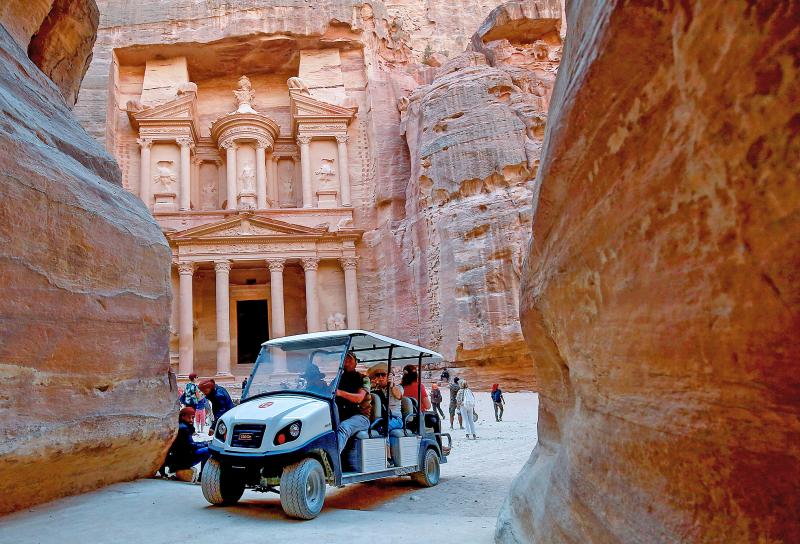 A small fleet of 10 rechargeable e-carts take visitors through the rose-colored Siq, or gorge, leading to the famed capital of the Nabateans, which dates back to the first century BC.