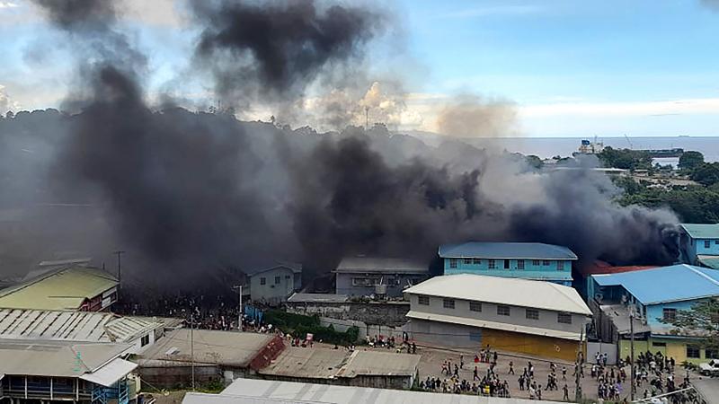 Businesses operated by Honiara’s Chinese community were looted and burned, prompting Beijing’s embassy to express “serious concerns” to the Solomons’ government.