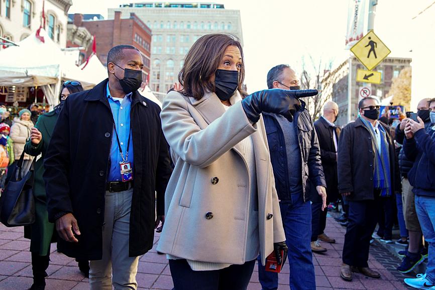 She told reporters that she was making the purchase with Thanksgiving cooking in mind, prompting laughter when she said that her husband, Doug Emhoff, was her “apprentice” in the kitchen.