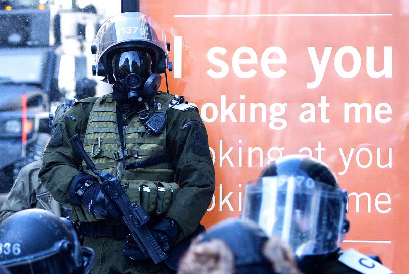 Some of those arrested on Saturday wore body armor, and had smoke grenades and other fireworks in their bags and vehicles, police said.