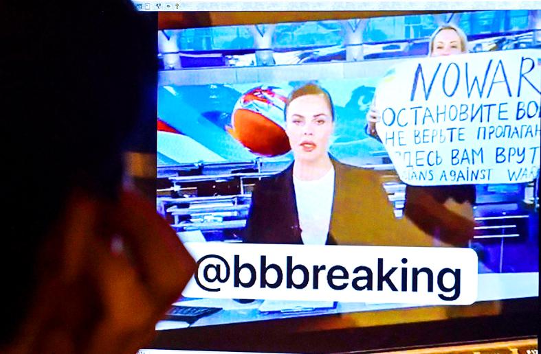 As the news anchor Yekaterina Andreyeva launched into an item about relations with Belarus, Ovsyannikova, who wore a dark formal suit, burst into view, holding up a handwritten poster saying “No War” in English.