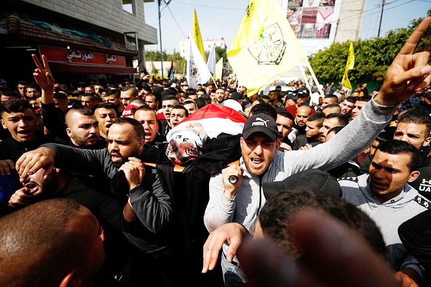 Israeli forces yesterday killed at least two Palestinians, the Palestinian Ministry of Health said, in clashes that erupted during a raid in the occupied West Bank following deadly attacks in Israel.