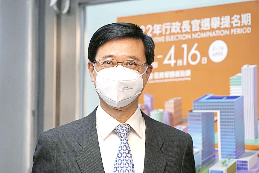 Hong Kong Chief Secretary for Administration John Lee (李家超), 64, is expected to be anointed the territory’s new chief executive by a committee of 1,500 Beijing loyalists next month.