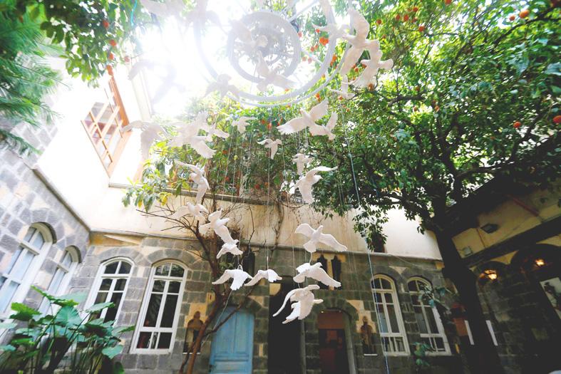 The students placed the doves in the courtyard of a traditional Damascene home.