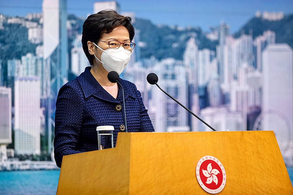 Hong Kong Chief Executive Carrie Lam (林鄭月娥) yesterday said that the territory would roll back social distancing measures tomorrow as previously announced, including opening bars and extending the hours for restaurants to serve customers.