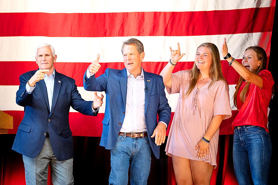 Meanwhile, other prominent Republicans are growing more assertive. In an illustration of the divide among top Republicans, Trump’s own vice president, Mike Pence, rallied with Kemp in the suburbs of Atlanta on Monday evening.