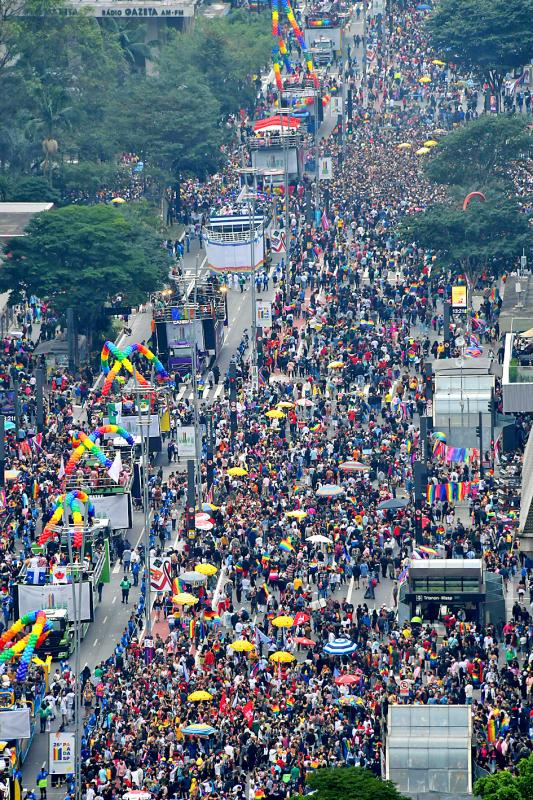 Several hundred thousand people on Sunday marched in Sao Paulo’s annual LGBTQ Pride parade under the slogan “vote with pride, for policies that represent us” — a reference to Brazil’s upcoming presidential election.
