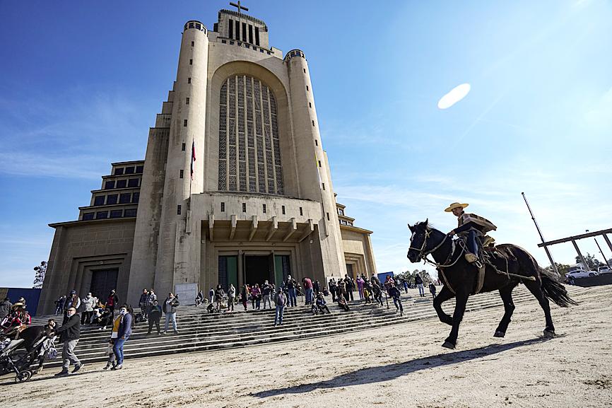 With the snow-covered Andes shining in the background, several dozen cowboys in woolen ponchos and families on wooden horse carts lined up on Saturday to receive a priest’s blessing in the huge esplanade in front of the National Sanctuary of Maipu.