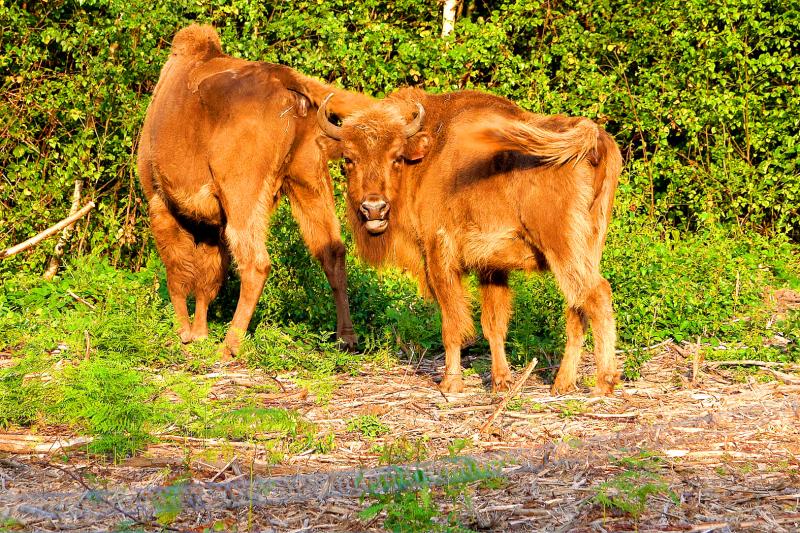 The aim is for the animals’ natural behavior to transform a dense commercial pine forest into a vibrant natural woodland. Their taste for bark would kill some trees and their bulk open up trails, letting light spill on to the forest floor, while their love of rolling around in dust baths would create more open ground.