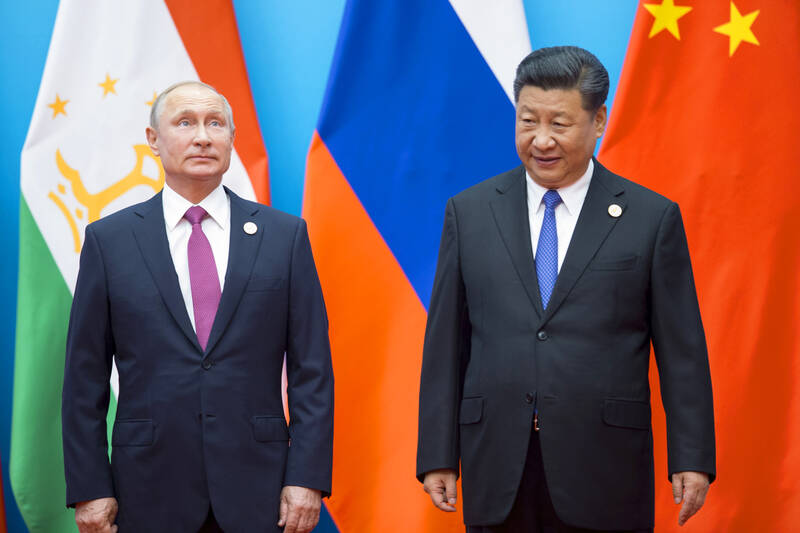 Chinese President Xi Jinping (習近平) is using his first trip abroad since the start of the COVID-19 pandemic to promote Beijing’s strategic ambitions at a summit with Russian President Vladimir Putin and other leaders of a Central Asian security group.