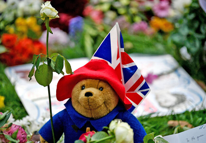 The beloved children’s book character is omnipresent among the thousands of bouquets outside the palace, thanks largely to a video of the queen drinking tea with the bear for her Platinum Jubilee.