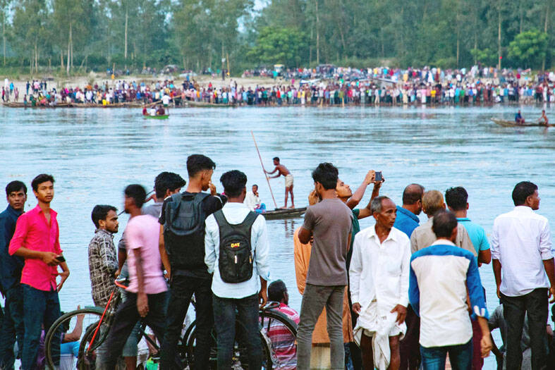 The small boat packed with mostly women and children on their way to a popular temple flipped over on Sunday in a river as onlookers screamed in horror from the shore.