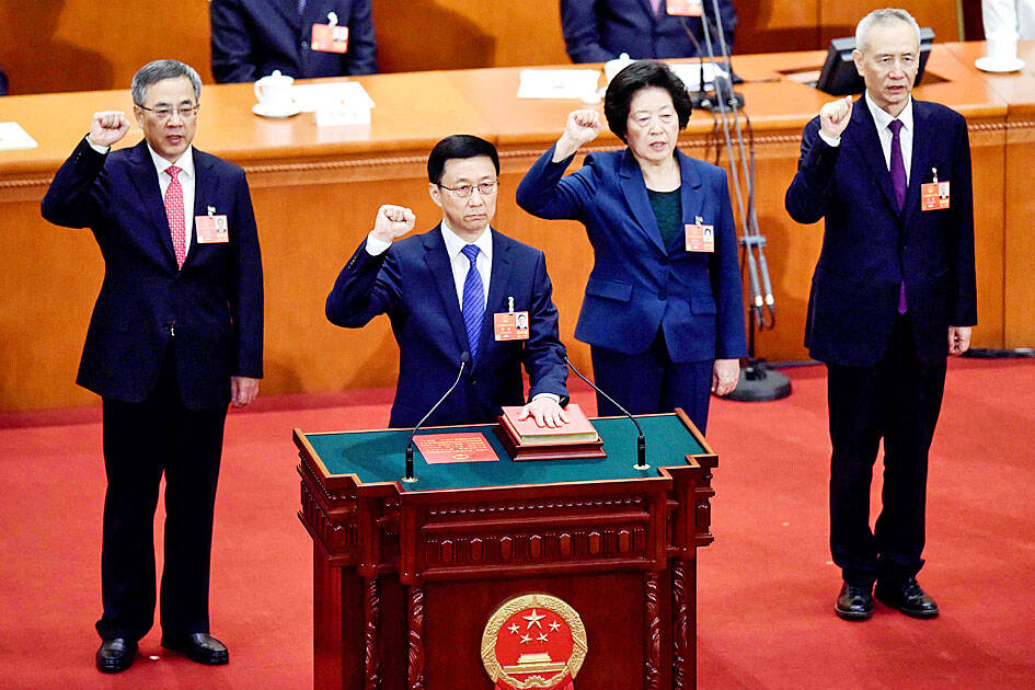 As Chinese President Xi Jinping (習近平) and his allies concentrated power over the weekend, the party’s highest-ranking female leader retired.