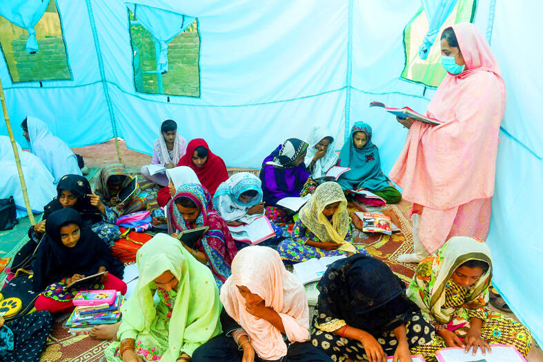 Before the rains, which have been linked to climate change, Afshan followed her sisters to a lime green schoolhouse.
