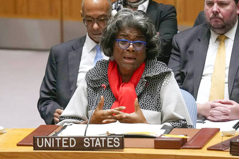 After the meeting, Thomas-Greenfield read a statement on behalf of eight council members — Albania, France, Ireland, India, Norway, the United Arab Emirates, the UK and the US — as well as South Korea, Japan and four countries joining the council in January.