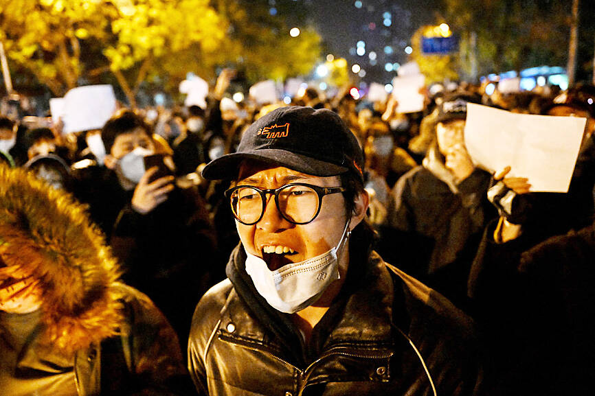 Silent vigils, calls for solidarity and anti-lockdown slogans expanded into demands for freedom of speech and even Chinese President Xi Jinping’s (習近平) resignation.