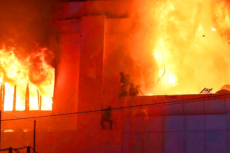 Images showed the building consumed by flames, with firefighters struggling to contain the intense blaze and rescuers attempting to pluck people from a burning ledge.