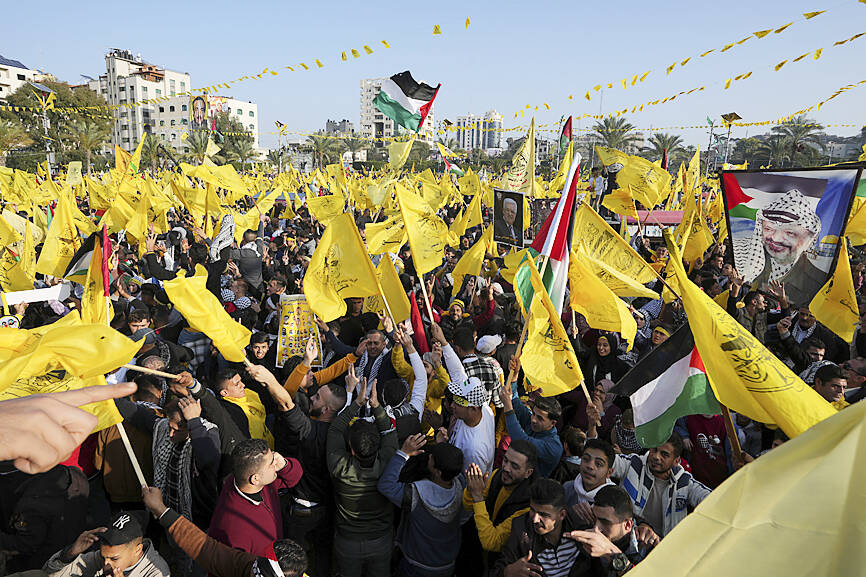 The crowds turned Katiba Park into a sea of yellow flags and pictures of Fatah founders and leaders, including Palestinian President Mahmoud Abbas and his predecessor Yasser Arafat.