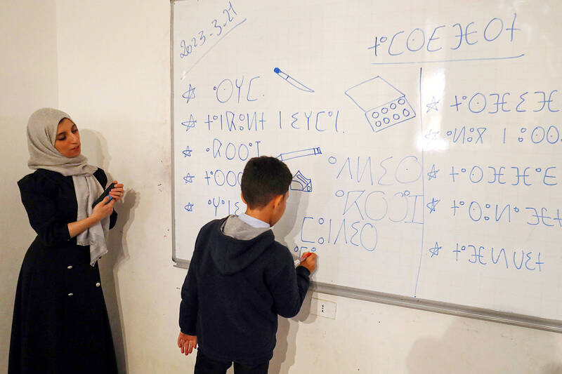 In the city of Zuwara, a majority-Berber community near the border with Tunisia, teacher Assirem Shawashi encouraged her nine-year-old pupils to approach the board, one by one, to draw out symbols.