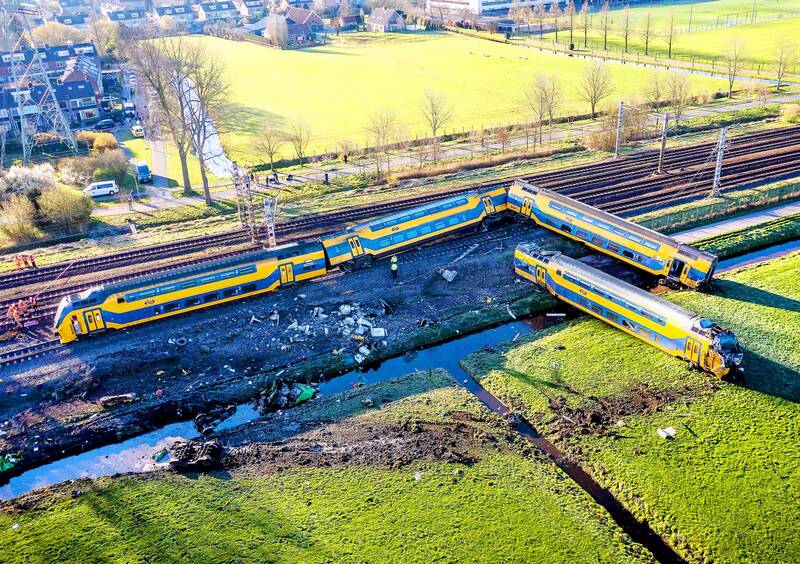The train traveling from Leiden to The Hague hit a crane on the track near the village of Voorschoten at about 3:30am, while a freight train separately collided with the equipment, rail operators said.