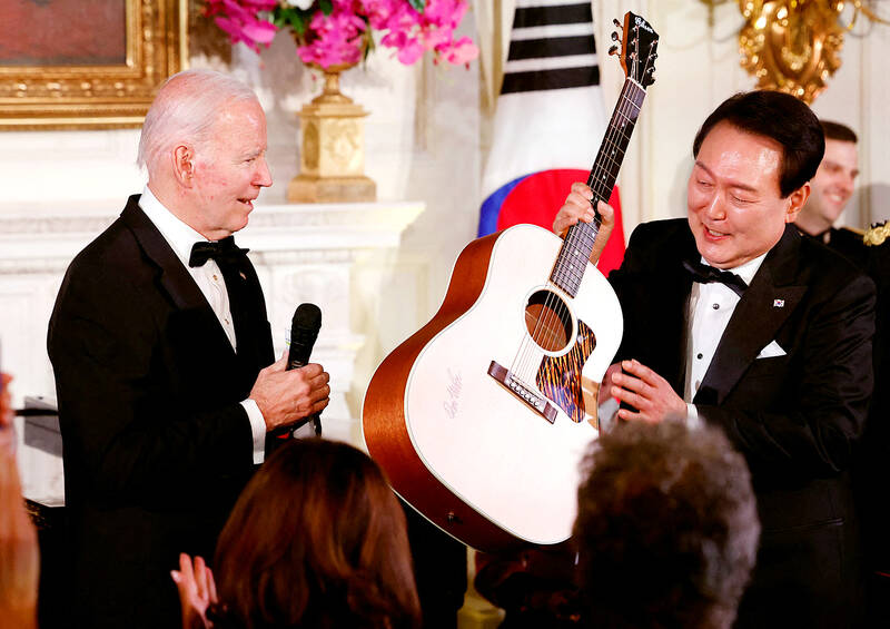 Biden told Yoon that McLean could not be at the White House to join them, but had sent a signed guitar, which the US president gifted to his South Korean counterpart.