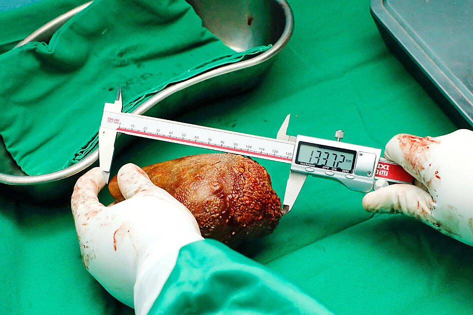 Coonge’s kidney stone measured 13.37cm long, compared with an average kidney which is about 10cm to 12cm long.