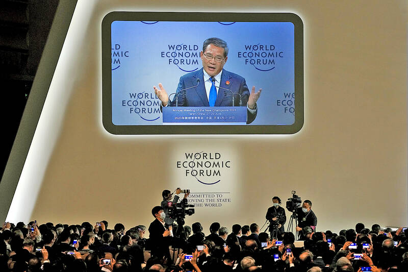 Chinese Premier Li Qiang (李強) yesterday said that governments that attempt to politicize their economies would fragment the world as the US and Europe “de-risk” supply chains from the Asian nation.