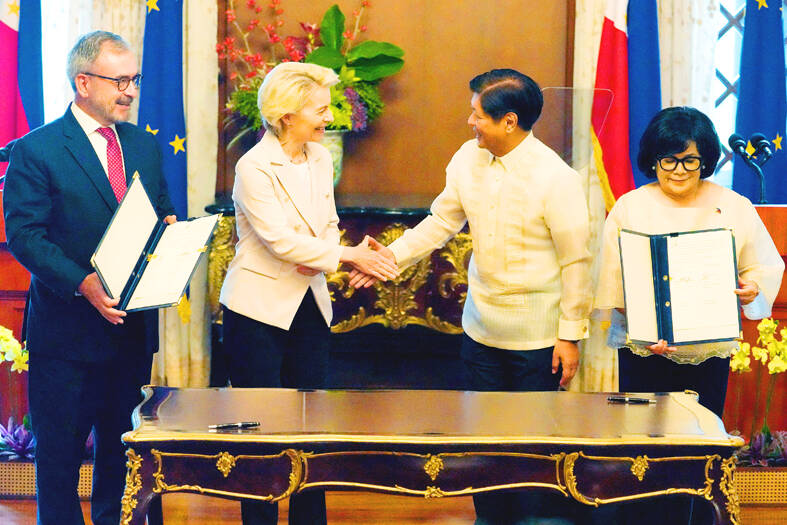 Von der Leyen spoke at a joint news conference with Philippine President Ferdinand Marcos Jr after holding talks in Manila that aimed to bolster trade, economic and security relations. The leaders announced the 27-nation bloc would resume negotiations with the Philippines for a free-trade agreement that stalled in 2017 under Marcos’ predecessor, former Philippine president Rodrigo Duterte.