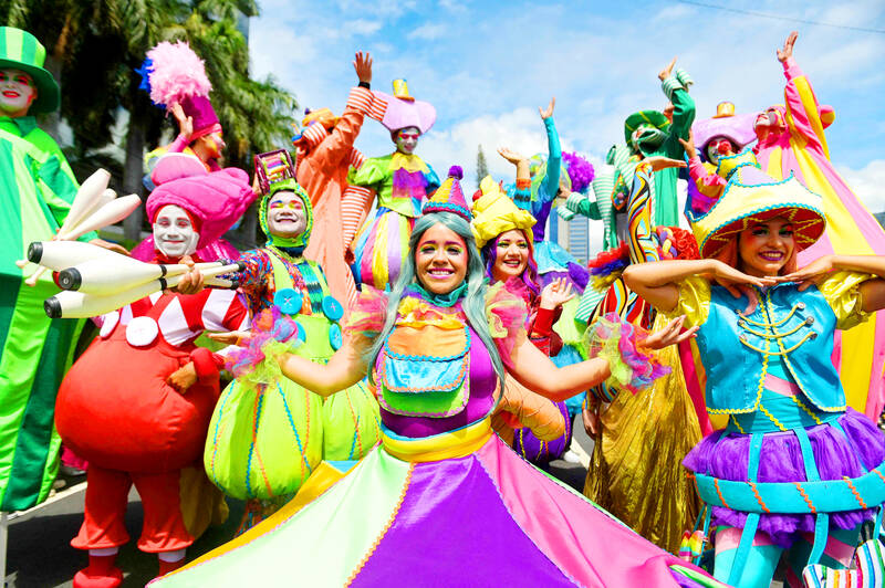 Queens adorned in multicolored flowers threw sweets to those in the audience, while elves and other fantastic beings showed off for passersby.