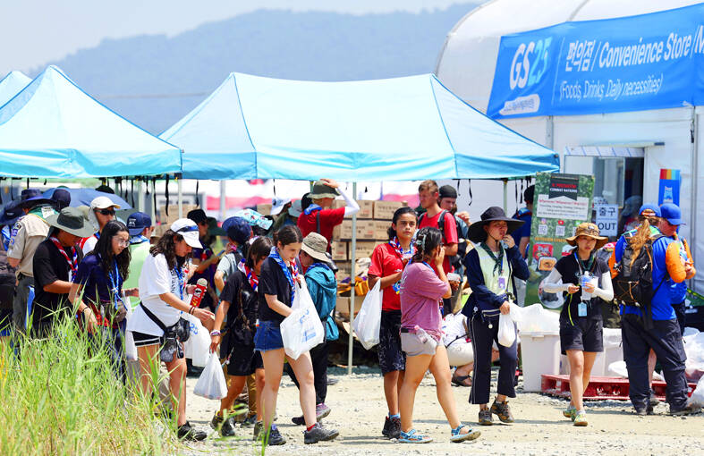 Wednesday night’s opening ceremony of the jamboree brought more than 40,000 scouts, mostly teens, to a campsite built on land reclaimed from the sea in the town of Buan. The temperature there reached 35oC on Wednesday.
