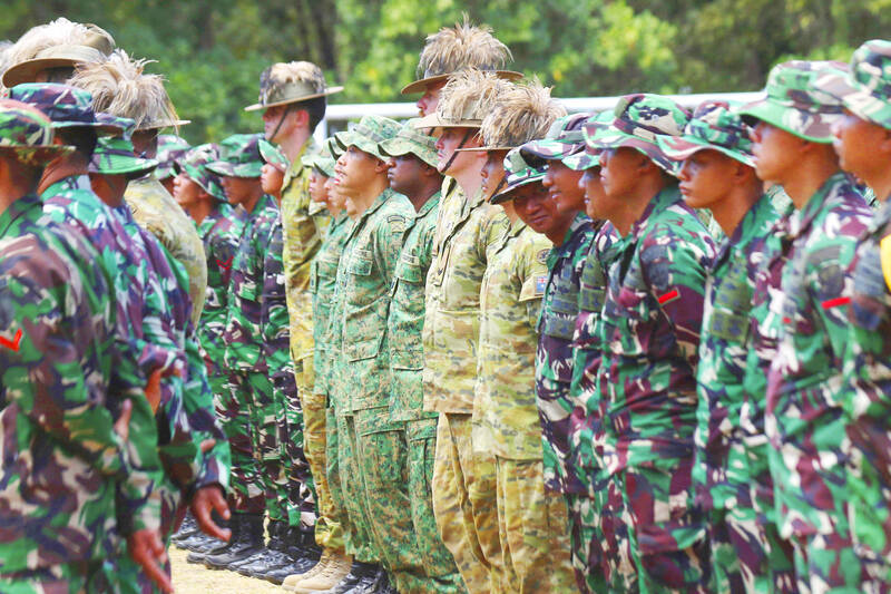 Soldiers from Indonesia, the US and five other nations yesterday began annual training exercises on Indonesia’s main island of Java as China’s increasing aggression raises concern.