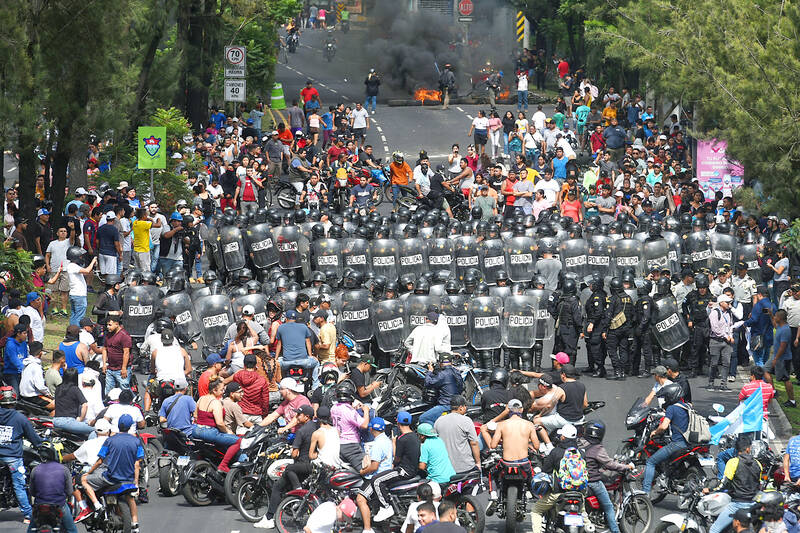 Police on Tuesday try to clear Periferico road in Guatemala City during a protest demanding the immediate resignation of Guatemalan Attorney General Consuelo Porras. Porras is investigating the party of Guatemalan president-elect Bernardo Arevalo and the electoral authority in what Organization of American States Secretary-General Luis Almagro on Tuesday called an unprecedented attack on Guatemala’s democracy, a Reuters report said. Protesters around the country have blocked roads for more than a week.