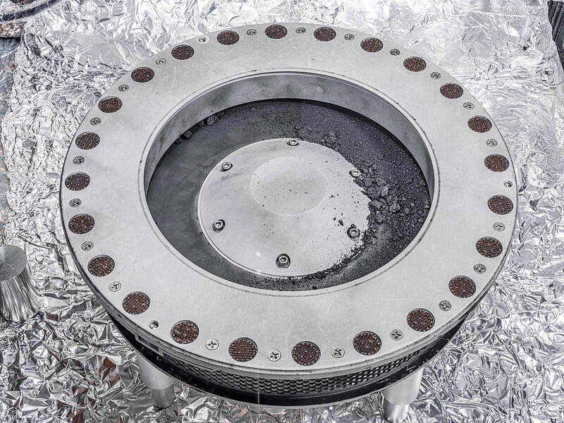 Black dust and particles were scattered around the outside edge of the internal sample chamber, Lauretta said.
