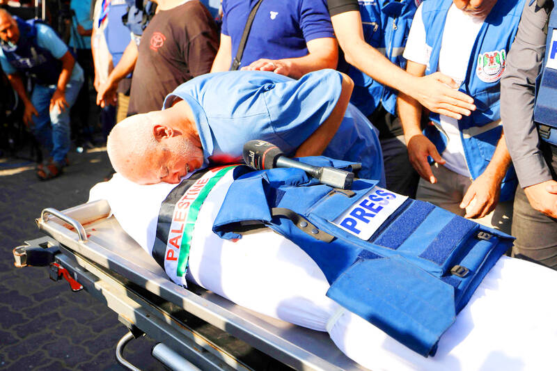 One of the victims, loaded into the hospital morgue with 10 of his family members, was his own colleague, veteran Palestine TV correspondent Mohammed Abu Hatab, 49.