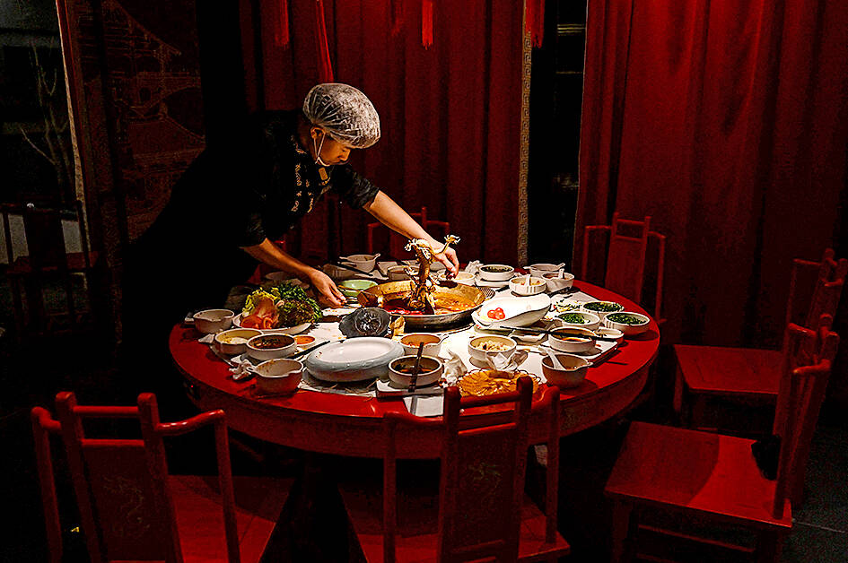 The process begins right after customers leave, with waiters emptying their hotpot broth — so rich it is used purely as a cooking medium — into a special filter that separates oil from water.