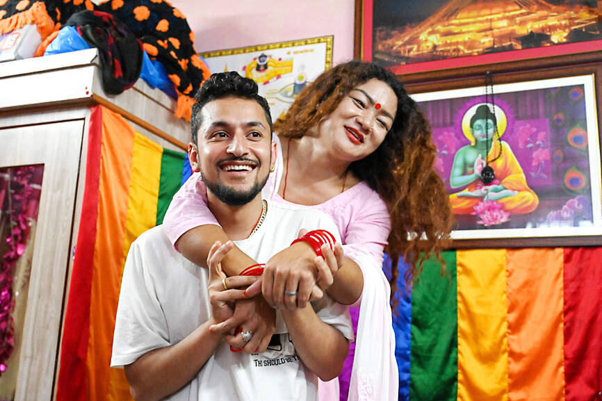 Transgender woman Maya Gurung and Surendra Pandey obtained a marriage certificate from a local ward in Lamjung district on Wednesday.