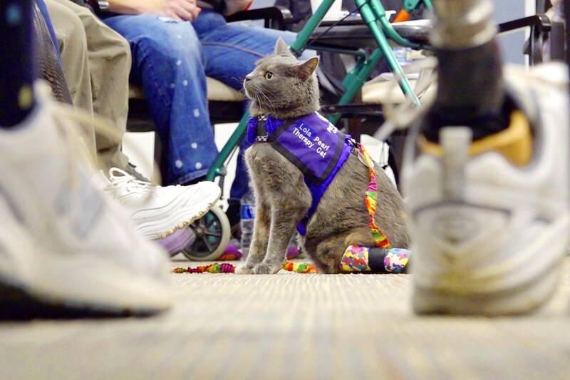 Mengel said she knew Lola-Pearl would be a good therapy cat after she brought her on a whim to an amputee coalition conference about a month after she adopted the domestic shorthair cat.