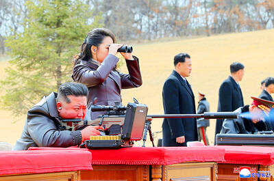 LIKE FATHER, LIKE DAUGHTER: By showing Ju-ae’s ability to handle a weapon, the photos ‘suggest she is indeed receiving training as a successor,’ an academic said North Korea on Saturday released a rare image of leader Kim Jong-un’s teenage daughter firing a rifle at a shooting range, adding to speculation that she is being groomed as his successor. Kim’s daughter, Ju-ae, has long been seen as the next in line to rule the secretive, nuclear-armed state, and took part in a string of recent high-profile outings, including last week’s military parade marking the closing stages of North Korea’s key party congress. Pyongyang’s official Korean Central News Agency (KCNA) released a photo of Ju-ae shooting a rifle at an outdoor shooting range, peering through a rifle scope