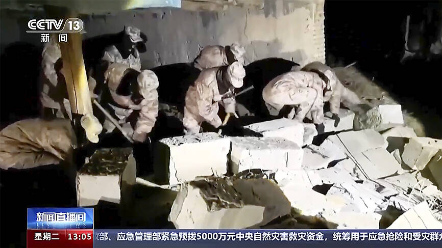 Rescue crews combed through the rubble, overturning bricks and stone blocks in search of victims. Emergency survival gear including coats, tents and folding beds to help the thousands of people who fled their homes had arrived or were on their way, Xinhua news agency said.