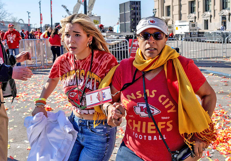 Three people were in custody in Kansas City, Missouri, yesterday, facing questions about what led to a deadly mass shooting near the city’s Super Bowl victory rally and who was behind it.