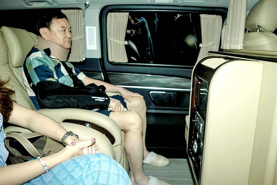 Wearing a checked shirt, protective mask and with his arm in a sling, Thaksin was pictured in the vehicle beside youngest daughter Paetongtarn Shinawatra, leader of the ruling Pheu Thai party, and arrived at his Bangkok residence 25 minutes later.