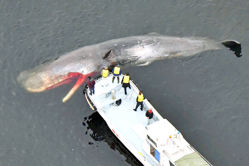 Prefectural officials and experts took a boat out to check on the whale and on Monday confirmed its death, presumably due to starvation.