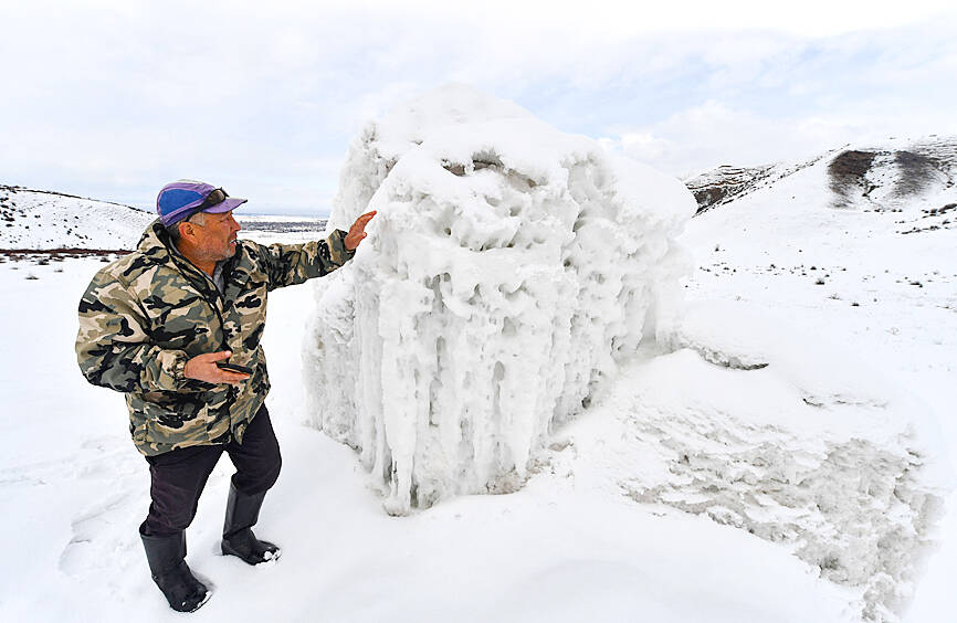 Standing on the ice hillock, farmer Erkinbek Kaldanov said he was optimistic about harnessing nature to counteract climate change.