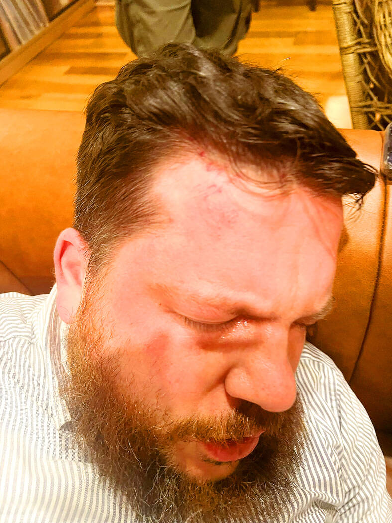In his post, Volkov said he was struck 15 times on the leg during the attack.