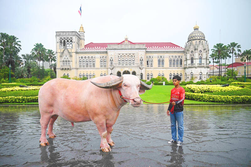Thai Prime Minister Srettha Thavisin yesterday took the bull by the horns as he welcomed an unusual visitor to his offices — an enormous white buffalo that recently sold for US$500,000.