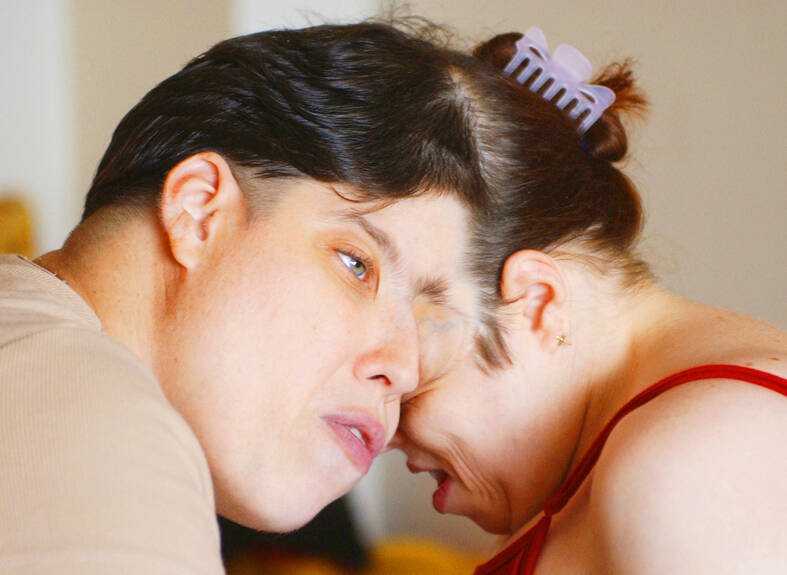 George, who had spina bifida and was 10cm shorter, was wheeled around by Lori on an adaptive wheeled stool. George came out as transgender in 2007.