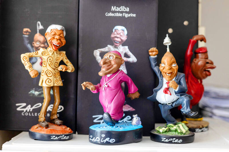 For tragic events like a wave of xenophobic violence that killed dozens of people in 2008, he uses Mandela and late archbishop Desmond Tutu, shown side by side, to represent the nation’s moral conscience.