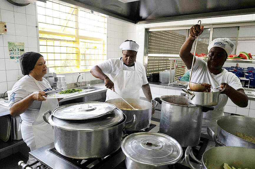“Cake? There’s no cake here,” cook Neide Oliveira laughed as she chopped onions for the 650 students of Burle Marx public school in the Curicica neighborhood on Rio’s west side.