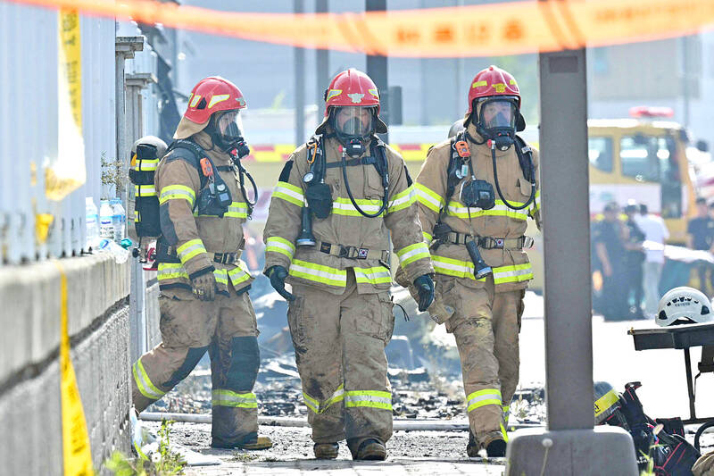 Twenty-two people were killed — including 18 Chinese nationals — in a massive fire at a South Korean lithium battery factory, the fire department said yesterday, one of the nation’s worst factory disasters in years.