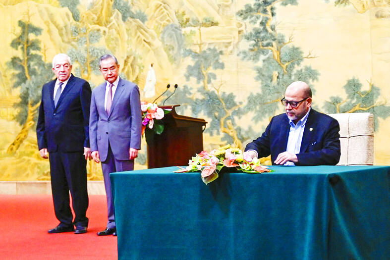 Chinese Minister of Foreign Affairs Wang Yi (王毅), who hosted senior Hamas official Musa Abu Marzuk, Fatah envoy Mahmud al-Aloul and emissaries from 12 other Palestinian groups, said they had agreed to set up an “interim national reconciliation government” to govern post-war Gaza.